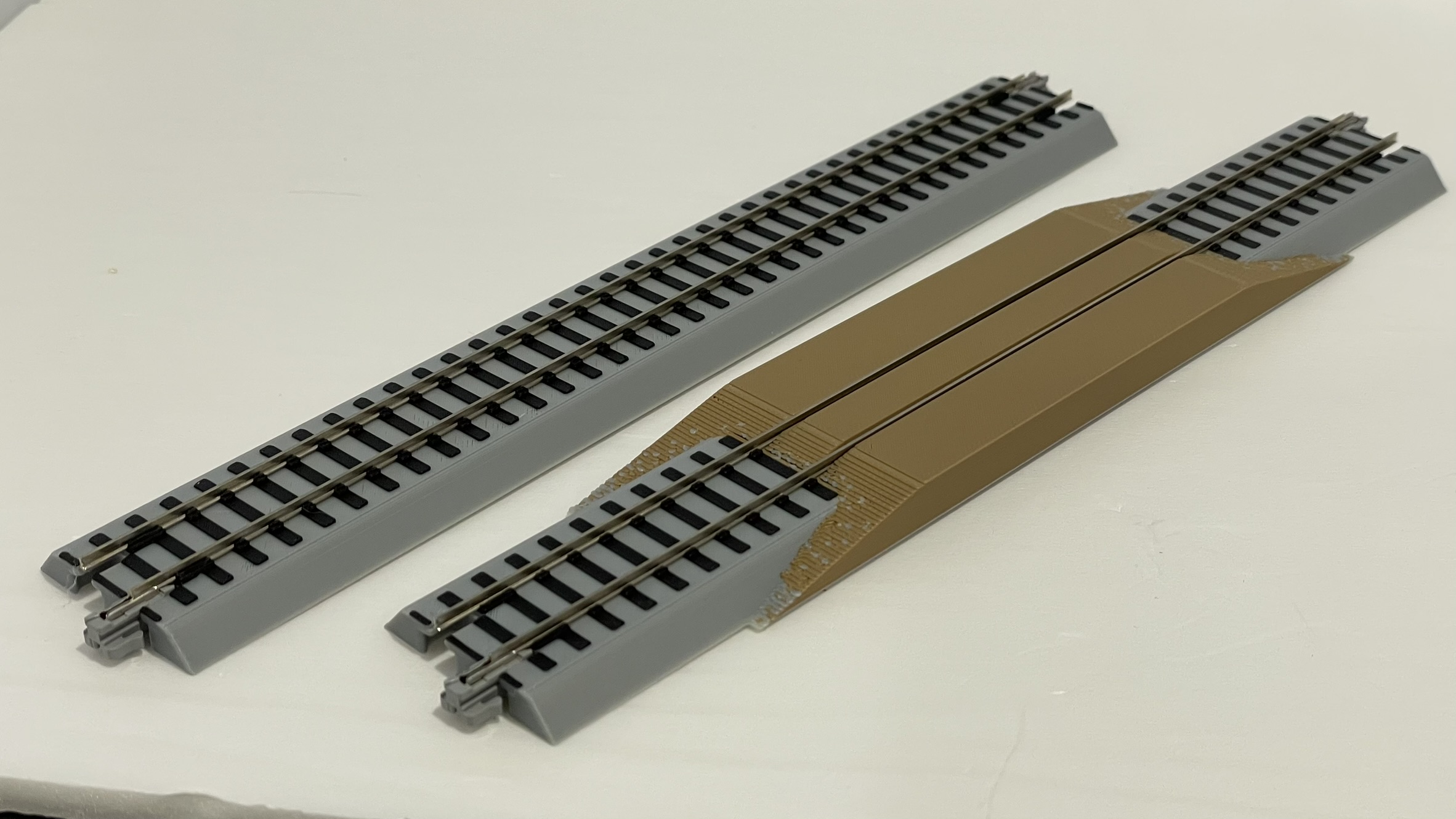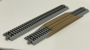 Compatible with Protraxx – straight sections. Standard Blackstone/Protraxx straight sections are 228mm but other lengths are offered to create complex track geometries. This crossing set come with one 228mm crossing and one 228mm straight section. Colored to represent a dirt crossing as was common on the narrow gauge, it also doubles as a rerailing section.