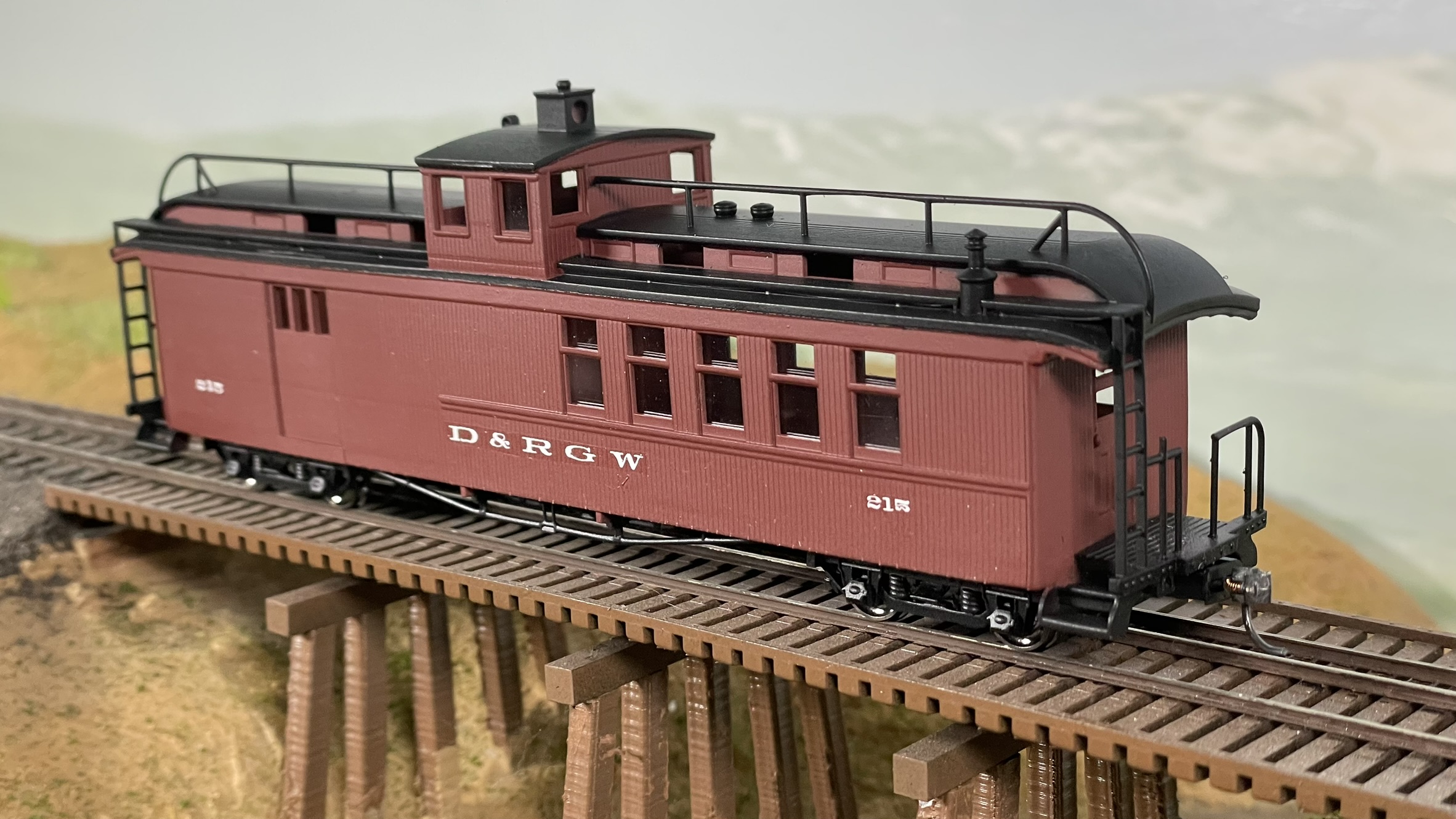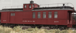 Resin kit for the Pagosa Springs branch combine. Cupola added in 1928, removed in 1941. Car was both red and green at various points in its life.